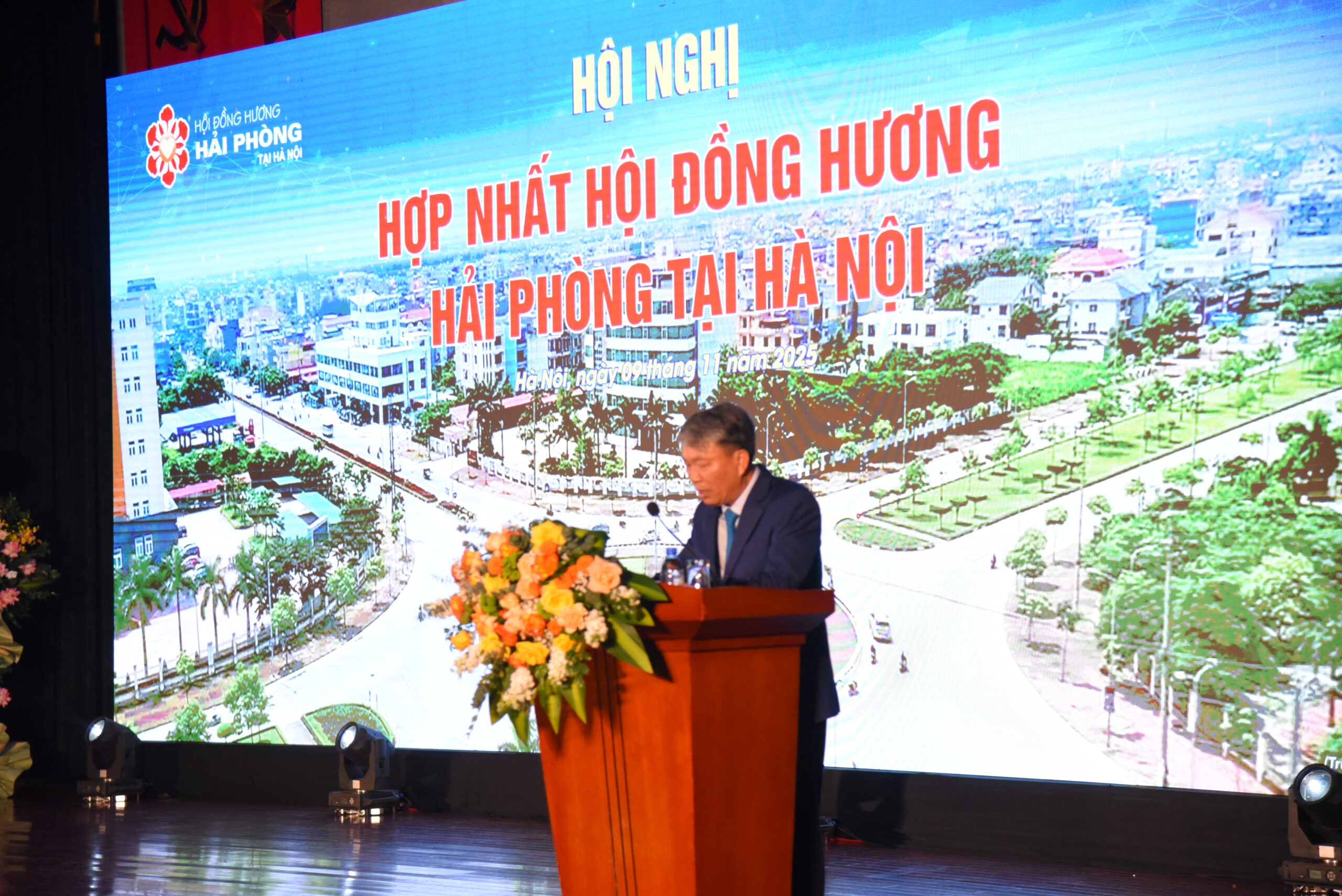Phát biểu tại hội nghị, đồng chí Trung tướng Trần Bá Thiều, nguyên Tổng cục trưởng Tổng cục Chính trị Công an nhân dân Việt Nam, Trưởng Ban Liên lạc Hội đồng hương Hải Phòng tại Hà Nội cho biết việc hợp nhất hai địa phương là một dấu mốc lịch sử quan trọng, thể hiện quyết sách chiến lược trong phát triển kinh tế – xã hội, tối ưu hóa nguồn lực và xây dựng trung tâm đô thị – công nghiệp – dịch vụ lớn của vùng Duyên hải Bắc Bộ. Hợp nhất hai hội đồng hương không chỉ phù hợp thực tiễn mà còn là biểu tượng cho tinh thần thống nhất, hướng về quê hương, chung tay xây dựng thành phố Hải Phòng mới giàu đẹp, văn minh, thịnh vượng…